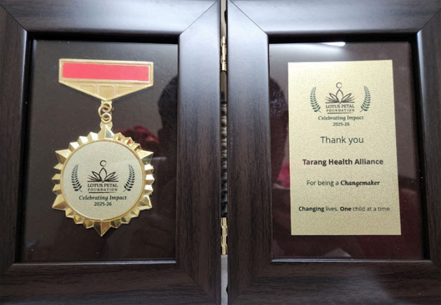 We are proud to receive the “Celebrating Impact” Award by Lotus Petal Foundation for 2025-26. This is for Tarang Health Alliance being a “Changemaker” and our shared journey of creating health champions of tomorrow with our comprehensive school health program. This recognition belongs to Tarang’s team members, whose hard work made this possible.