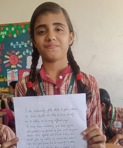 Since I started learning health last year, I’ve stopped eating unhealthy food and become more conscious about what I eat. I feel healthier now and even rank 2nd or 3rd in class. I love eating protein-rich foods like palak, paneer, eggs, fish, and pulses.